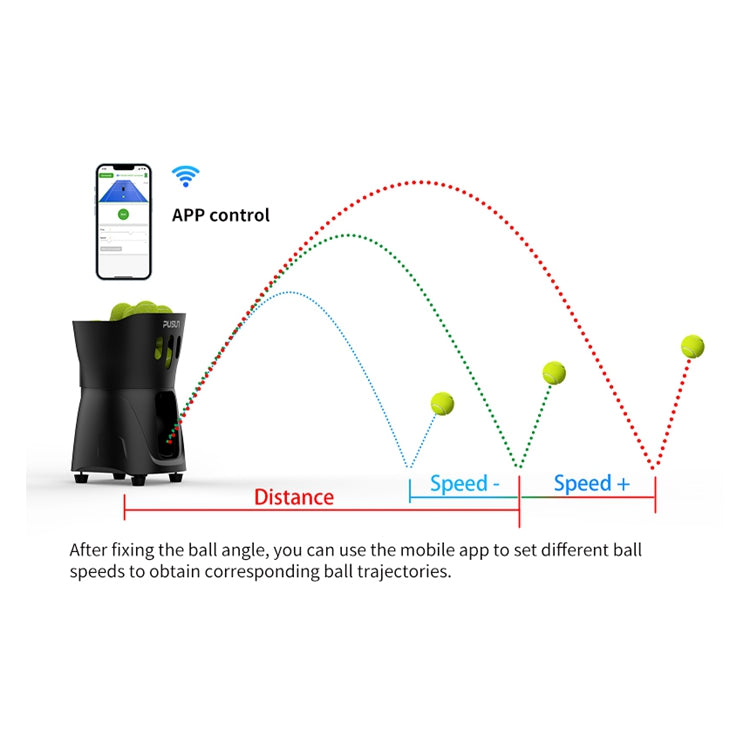 - Smart App Control – Dedicated mobile app allows precise adjustment of throwing speed and frequency.