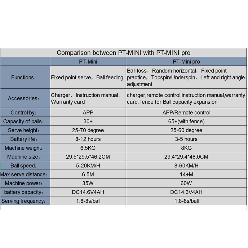 - Performance Range – Serving speed: 8–60 km/h | Frequency: 1.6–8 seconds per ball.